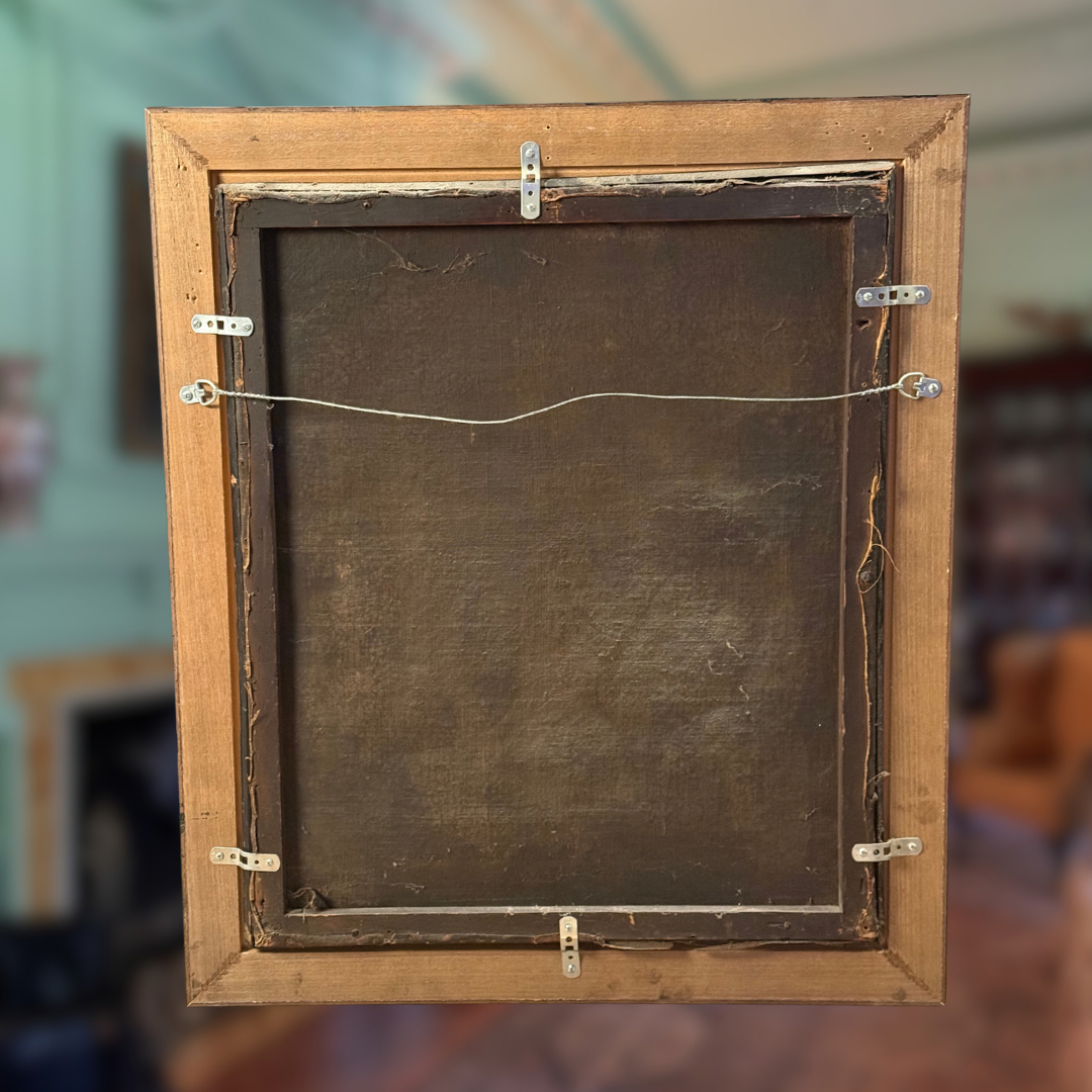 This rare 17th-century oil portrait depicts Adam Daniel Aspach, a documented Northern European medical professional active during the mid-to-late 1600s. The painting is particularly notable for its surviving provenance, which is inscribed directly on the back of the canvas and reads: